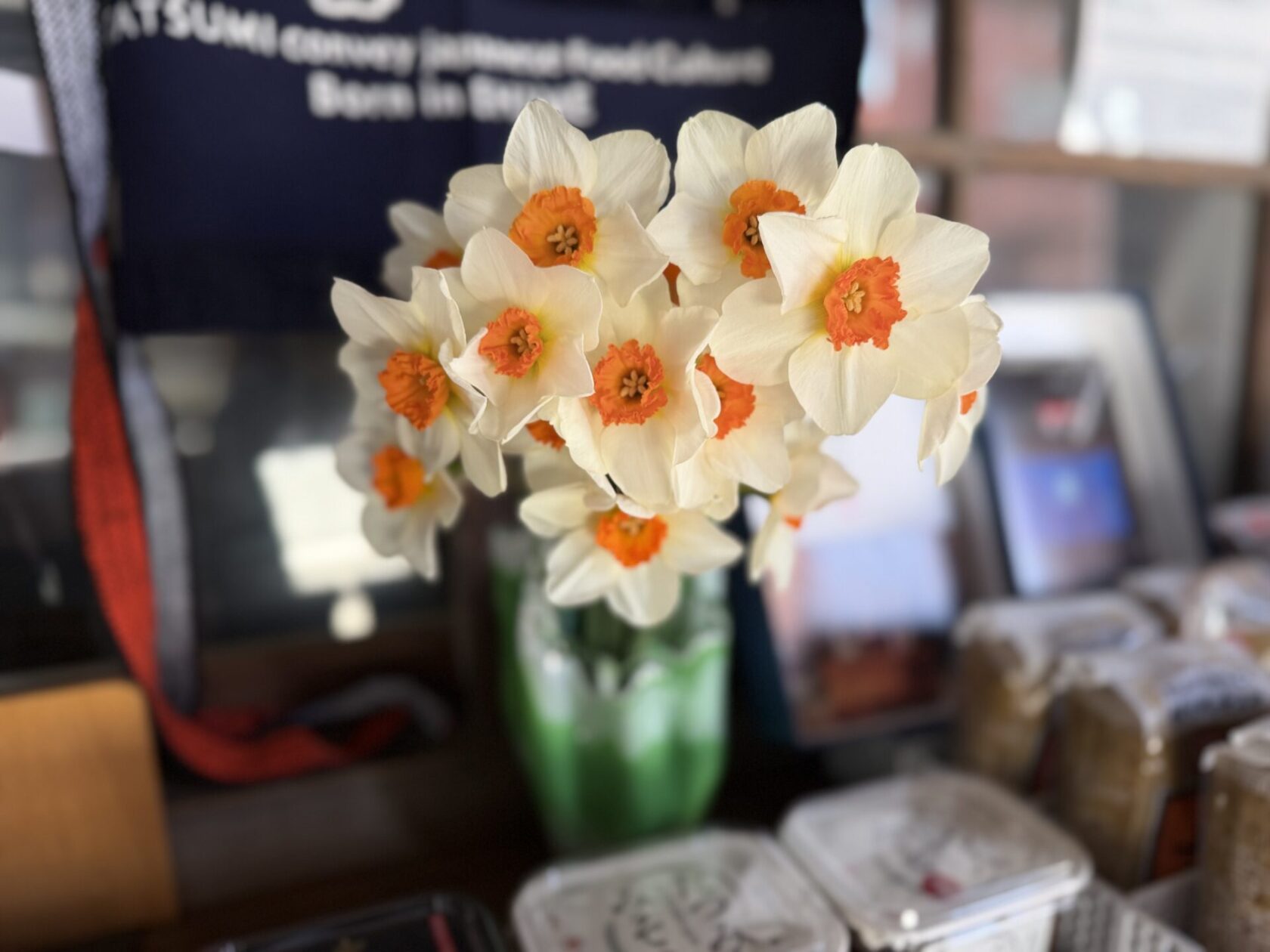 気持ちを“ぱっ”と明るくしてくれる水仙(すいせん)がお出迎え。気持ちがいい春。いい季節になりました。4月から新年度が始まりますね、新しいこと色々チャレンジ!